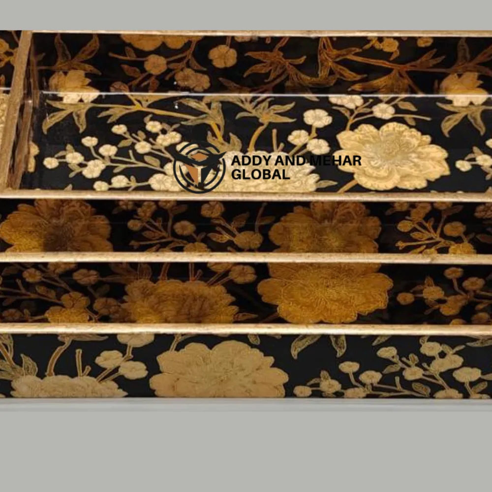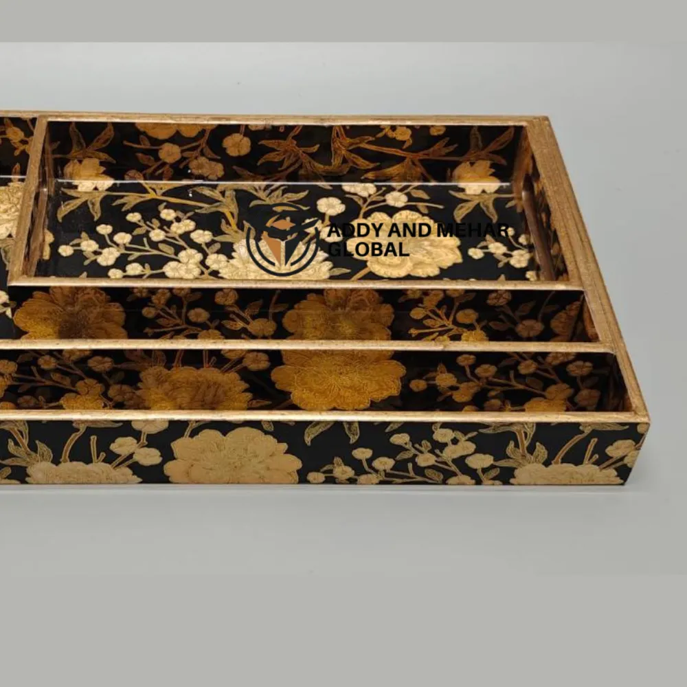 Gold Geometric Enamel Serving Tray Set of 3 – Luxury MDF & Paper Nesting Trays for Kitchen, Dining & Elegant Home Decor