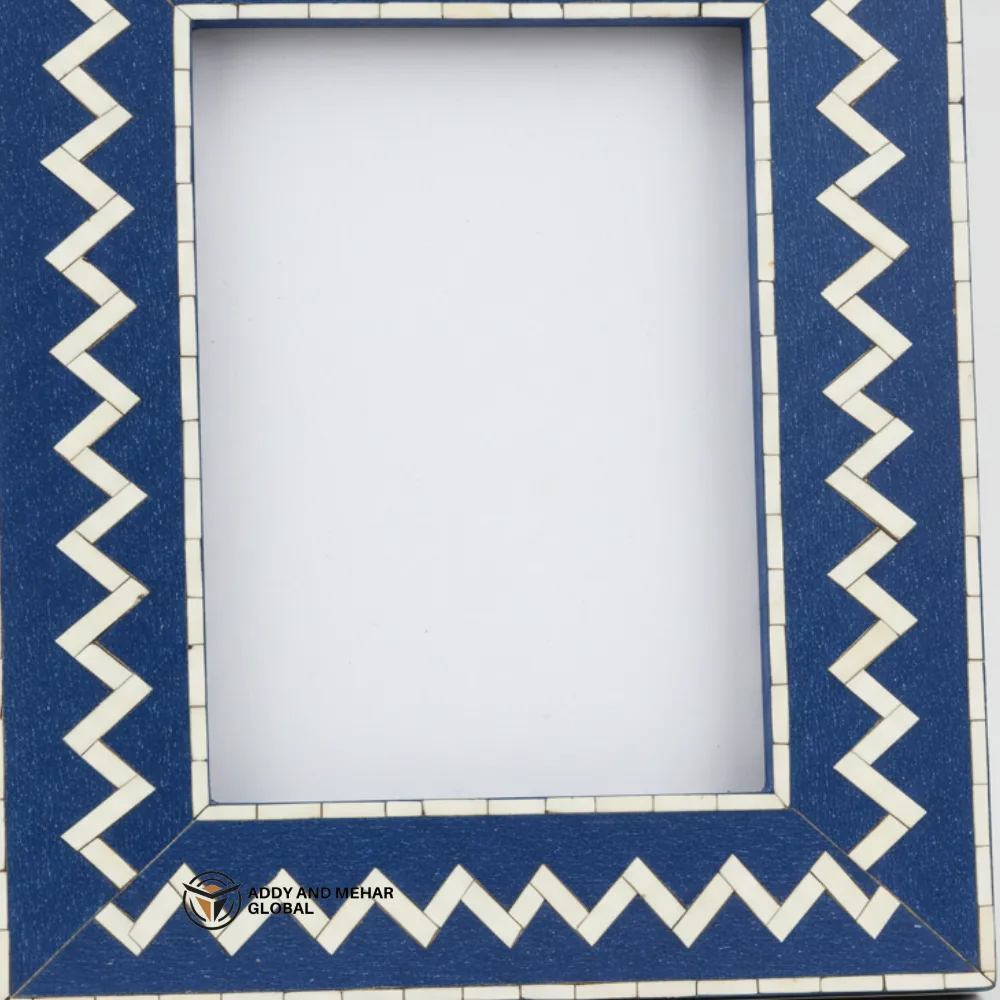 Handcrafted Blue Bone Inlay Zigzag Photo Frame – Decorative Artisan Picture Frame for Home Décor