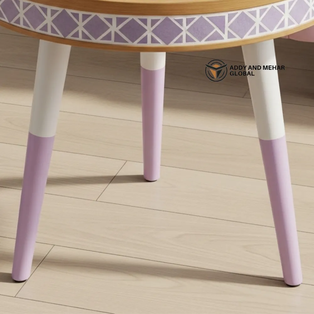 Lavender Meena Design Round Wooden Stool – Handcrafted Decorative Accent Stool