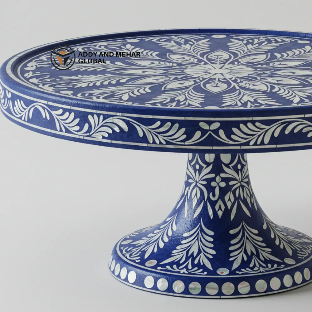 Elevate your dessert presentation with this Luxury Handmade Blue Mother-of-Pearl Cake Stand, a stunning blend of craftsmanship and elegance. Each stand is meticulously handcrafted from premium mother-of-pearl, giving it a luminous, iridescent finish that catches light beautifully. The rich blue tones create a sophisticated and serene aesthetic, making it a striking centerpiece for weddings, birthdays, baby showers, or upscale home décor.