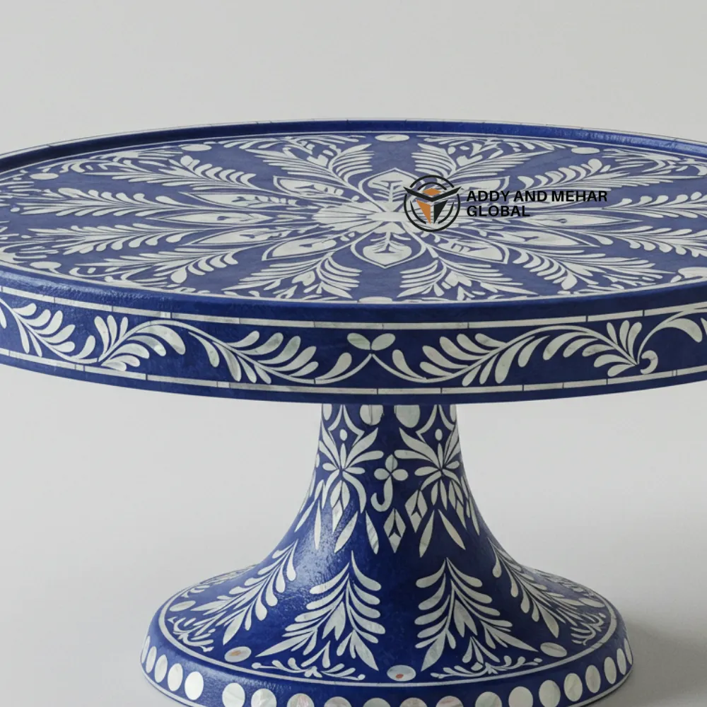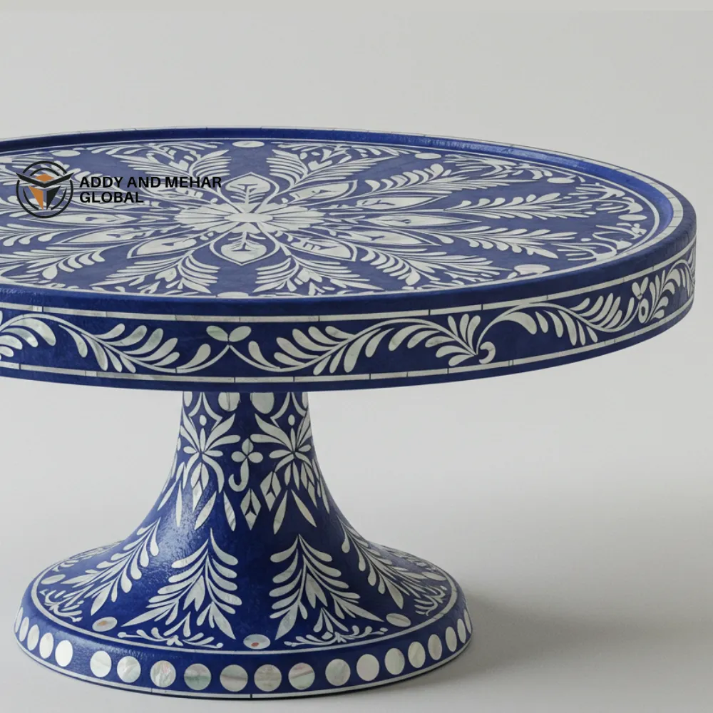 Luxury Handmade Blue Mother-of-Pearl Cake Stand
