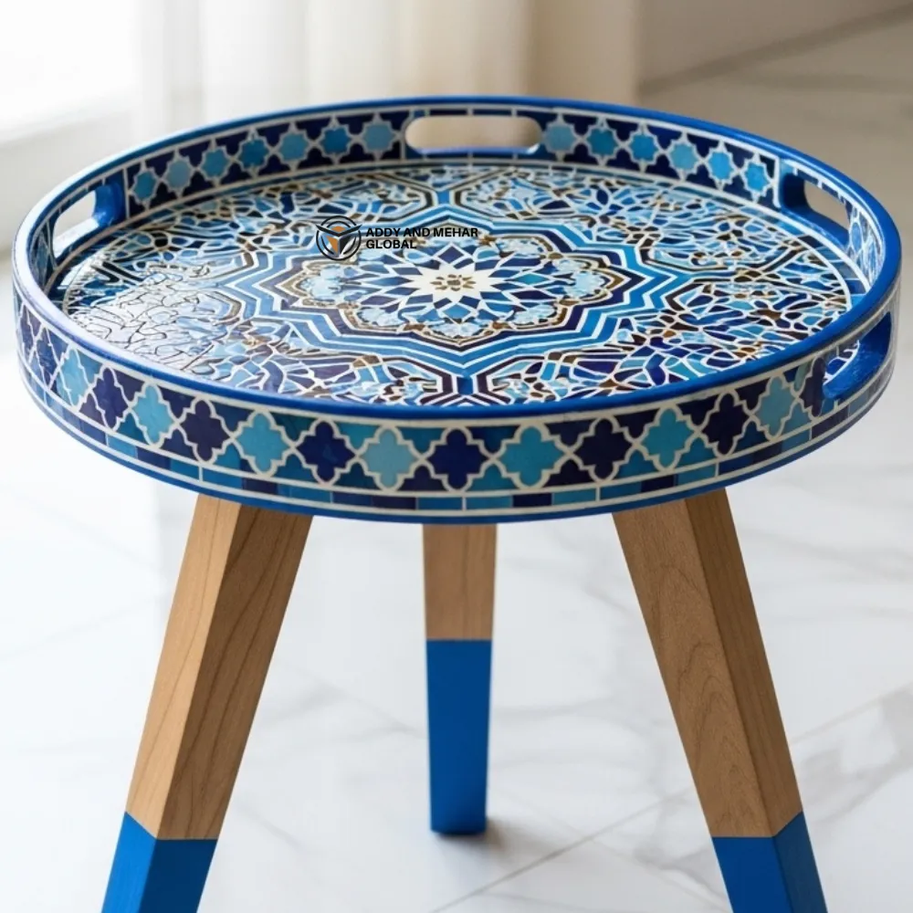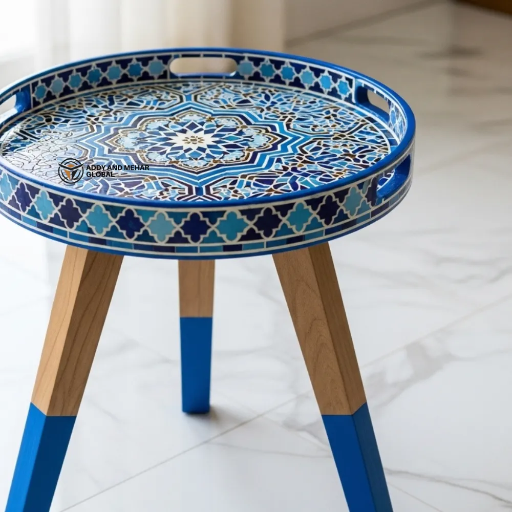 Bring timeless elegance to your home with this Royal Blue Meena Art Wooden Stool. Carefully handcrafted by artisans, this stool showcases a beautiful traditional Meena floral design in a vibrant blue finish. Built from quality wood with sturdy tripod legs, it offers both durability and style. Ideal as a seating stool, footrest, or decorative accent, it complements living rooms, bedrooms, and modern interiors.